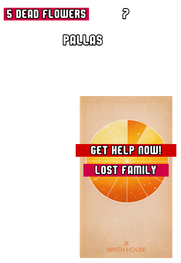 Underneath Bloom and Serendipity, there is a set of Sprinkles that are quite interesting. They are “5 dead flowers,” the number “7,” and “Pallas,” referring to Pallas Athena. These Sprinkles, especially the “5 dead flowers,” bounce off of “lost family,” and “get help now!” that lies over the 9th House, a card standing in place of conscious level focus, or more so, what the soul WANTS his conscious level focus to be.