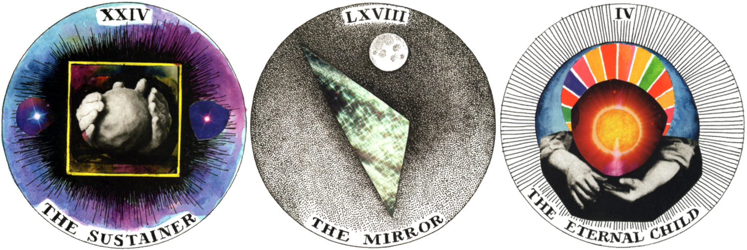 On their own, separated, The Sustainer and The Eternal Child can appear imbalance, but through The Mirror they see each other, they reflect inward and outward, and create the image of the eclipse. The energy or projection of said eclipse occurs more in the balance of the Shadow or the Dark Sun through The Creator and The Ring.