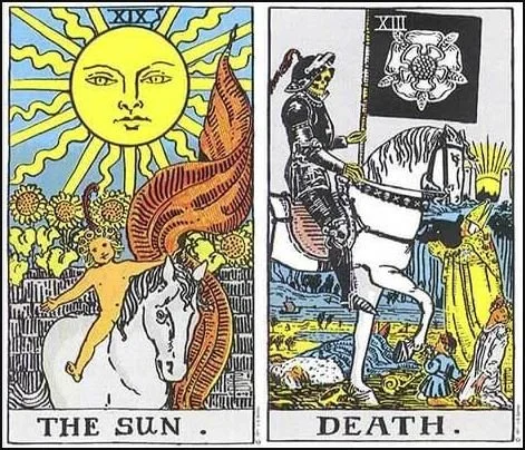 So, yeah, Death and The Sun are the same. The baby and the Grim Reaper are the same. Do with that what you will.