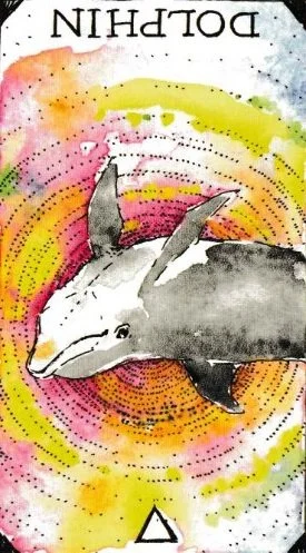 The Dolphin connects to the Raccoon with the Sprinkle that says, “second part of…” referring to the Dolphin as being the second part of the Raccoon, a reflection of it, a conscious and physical level version of the same kind of restriction and filtering of energy. They reflect each other mainly in the way of creativity and expression, the way he interacts with the audience, and possibly how he shows up in the studio or rehearsals with the group, toning things down, making space. This is then given a funny bop to the head with the “go off!” Sprinkle being like, “yeah, no, come on, you know this isn’t you unless you’re giving it 100%” I feel like this is where the first breaks are going to be felt, in the studio, in rehearsal with the other guys where his performance and creative energy really start to buzz and he just CAN NOT hold himself down.