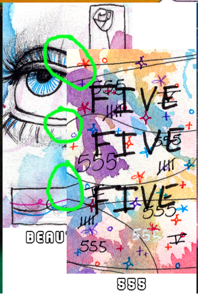 The sense of things being paused or frozen inside of a photograph of a single instance in time is reflected with the 555 card over the Beautiful card. Just as they are laid out in the image, 555, which reflects that element of stagnation of necessary and guided pause, was over Beautiful in such a way that it felt like we were seeing a paused video of a person just beginning to open their eyes and a flower just beginning to bloom. There’s also this very interesting flow between the cards that may be difficult to see, but the lines that flow over the 555 card flow directly into lines on the Beautiful card: