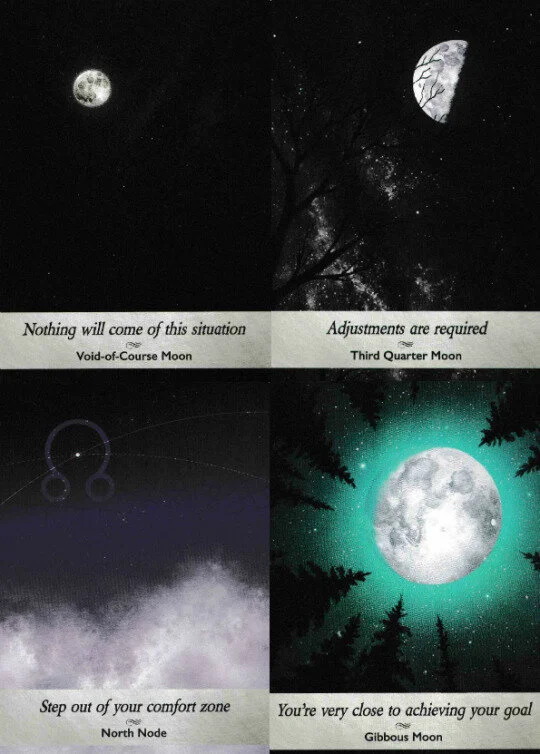 This is pretty on point with what I was getting in the energy reading. These cards came out altogether, but they came out in two sets as they are displayed with Void-of-Course and Third Quarter together, and North Node and Gibbous together. If you put them together they have a solid message where it’s clear that something that he’s doing now, his current state of being is dwindling and has run its course pretty much, therefore that shift of internal to external is necessary in order for him to enact a new phase following his integration. Then with the second set, stepping out of his comfort zone may refer to an emotional comfort zone which is something he would have to bypass in order to project his “solar panel” energy the way Namjoon does. And just the same, “you’re very close to achieving your goal” goes right along with “it’s coming” and “conclusions are within reach.”