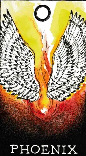 The most interesting bit of his reading for me, the part I was most excited to read through, is his Air alignment. With so much focus on Air energy, communication, and observation, I was curious to see how it would show up in his reading. The Air Alignment refers to conscious level thought processing, patterns of logic, focus, communication, and planning. Here, he has the Phoenix, one of the seven Spirit cards in the deck, which is associated with the Root Chakra.