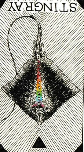 The image is interesting as it feels as though the outside lines are invading the body of the Stingray, etching the black away from its edges. It’s depleting it on some level, but the rainbow chakras in the spine are strong and illuminated no matter what. Again, I feel this goes back to just not wanting to involve himself in unnecessary drama that is not his own, or of his own making, but currently he has to tiptoe around A LOT of different things. He’s moving strongly, but there’s pollution around him. It doesn’t stop him, it just seems to be quite a concern or something that’s in the back of his mind all the time with this.