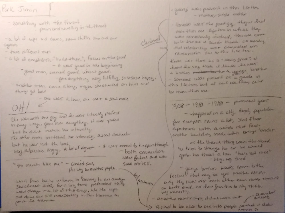 As you might be able to tell from the image above, these readings can be a bit stressful as I get things in bits and pieces throughout the reading, and because of that, I never know where to start. I never know if it’s better to just follow my notes, or if it’s better to try and bring everything in as close to chronological order as I possibly can. I think just for the sake of not accidentally missing anything, I am going to follow my notes, but I’ll start with what I think most people might be the most curious about, and that is what other members are present in this past life with Jimin.
