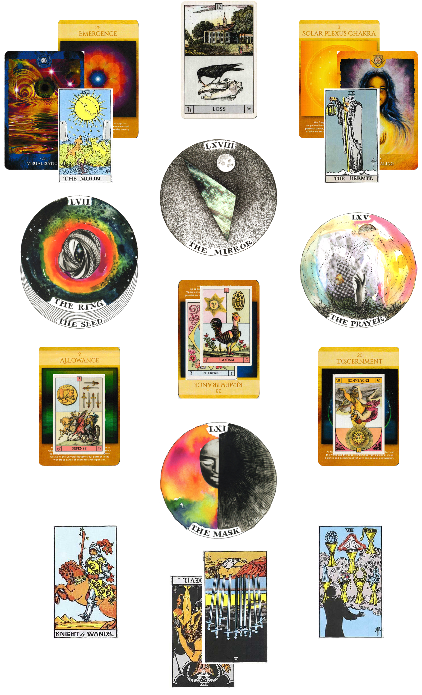The current state of the soul is represented here with The Mirror. I was seeing this flash back and forth to where the original blueprint of design of his karmic progression in this lifetime was to be a mirror, was to be a looking glass for others to see themselves and the world through. Something that resonates more as a funhouse mirror, something that could playfully warp images and reality to expand on them, help people see them in different ways, be more playful and carefree with perception. It’s actually very fun and childlike, an effort to embrace childlike wonder and amazement with everything.