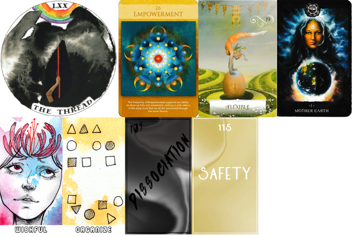 The entirety of the guideline feels like a bit of a mess, but it’s also very clearly laying out elements of separation and issues of identity and self-perception. First off, the most positive element here is Safety over Dissociation, which I see reflecting directly over to the Wishful and Organize card. Wishful and Safety reflect the soul, while Dissociation and Organize, which feature different shapes being separated from each other, show the overall separation of the layers of the consciousness and possibly the split element of the soul itself.
