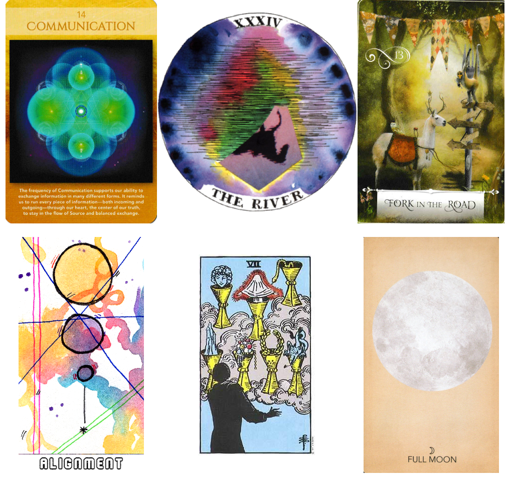 Notes: Very scattered energy, all over the place, a lot of things going on, a lot of decisions to make, very overwhelming. Feeling stuck, pressured to move forward, confused about how to move forward or which way to go. Struggling between personal authority and external direction. Hesitating due to confusion or a lack of clarity or guidance. Energy is unstable, working on alignment and flow. Illumination can be found within. You’re starting on the left side of the energy web, more so in the reversed Page of Pentacles, reversed 2 of Wands, and reversed Knight of Wands. You can regulate through the Queen of Pentacles, illuminate from within (Full Moon), create personal alignment, and stabilize the flow of your own energy (The River.) For some of you, the answers to what is confusing or overwhelming you (Fork In The Road + 7 of Cups) will come through Communication with trusted friends, family, a counselor, a therapist, a business advisor, an accountant, a doctor, administrator, manager, and so on. External assistance may be necessary to help organize your thoughts and plans or help you figure out your next move. There are a lot of people around you who love you enough to help you through anything. Don’t be stubborn about reaching out.