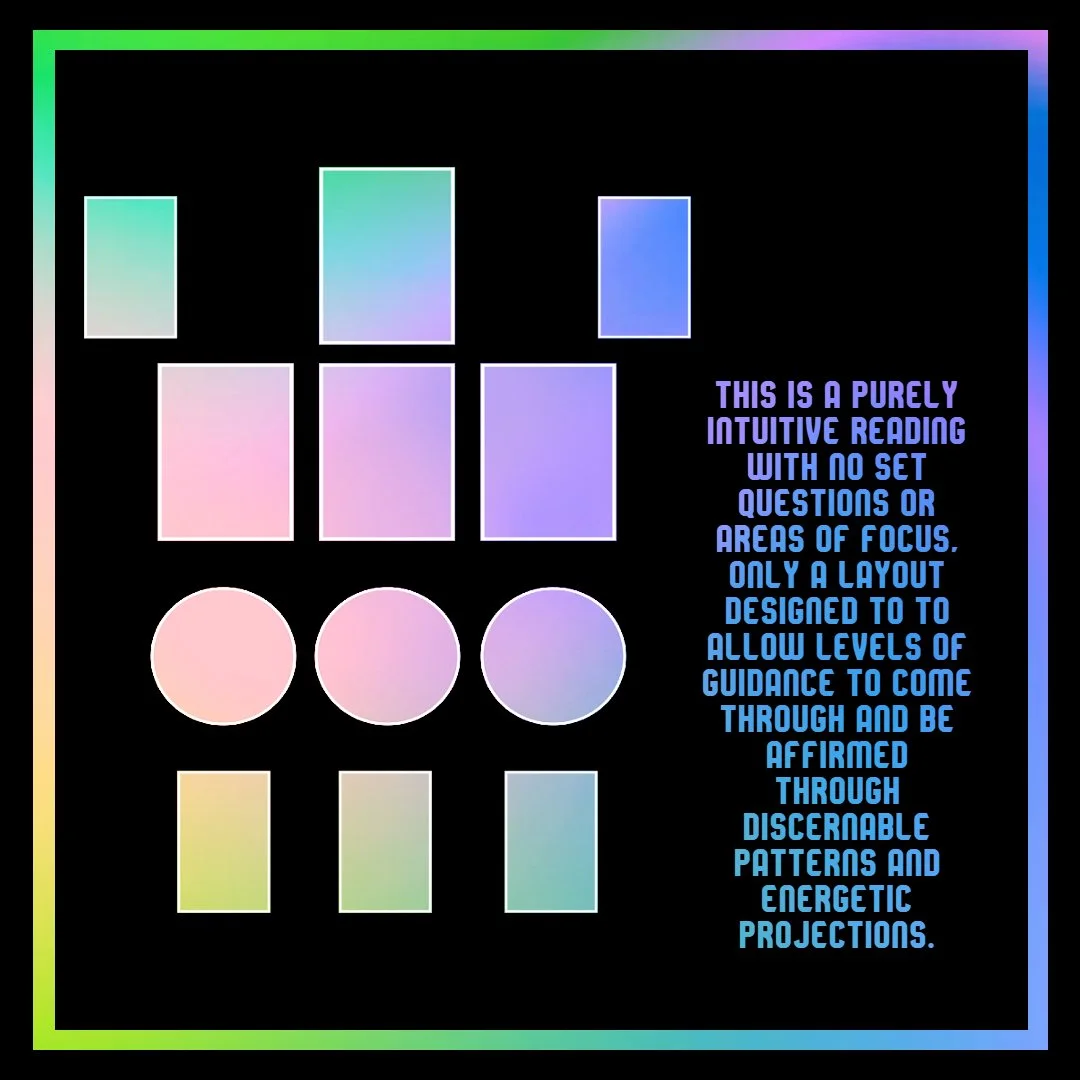 The Guided Messages is designed to be a completely intuitive 12+ card reading that can be used to connect with a person's Guides and receive messages relevant to their current physical, conscious, or spiritual state. While there is a set layout for this reading, there is no specific question or topic assigned to any placement, instead, each placement is meant to be a conduit for individual projections that can then be read both as individual messages and a whole picture.
